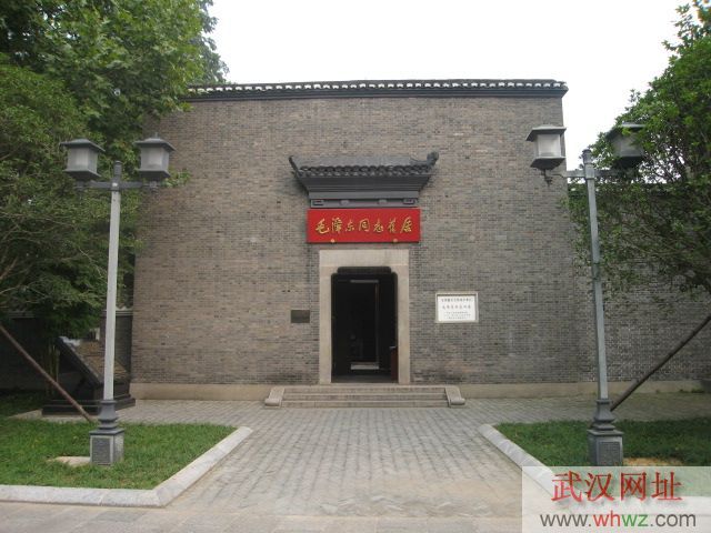 武昌毛澤東舊居位于武昌都府堤41號(hào),是毛澤東1927年主持農(nóng)講所工作并在武漢從事革命活動(dòng)時(shí)的辦公地兼居所,是當(dāng)時(shí)中共中央農(nóng)委的所在地,也是毛澤東、楊開慧一家最后團(tuán)聚的地方。毛澤東在這里完成了著名的《湖南農(nóng)民運(yùn)動(dòng)考察報(bào)告》。舊居坐東朝西,磚木結(jié)構(gòu),青磚灰瓦,四周為硬山榍頭風(fēng)火外墻,大門為單坡屋檐,墻體有門楣裝飾,朱紅色的板門上裝有門釘、門鈸。占地面積909平方米,建筑面積436平方米,院內(nèi)三進(jìn)三天井,內(nèi)隔斷均為木質(zhì)板壁和隔扇門窗,后檐有門,貫通呼應(yīng)。地面裝有石質(zhì)雙錢式地漏,廳堂中有亮瓦,采光充分,凈空很高,體現(xiàn)了對(duì)武漢氣候特點(diǎn)的適應(yīng),具有典型江南民居風(fēng)格,體現(xiàn)了武漢地域建筑特點(diǎn)。正門額上木質(zhì)紅色橫匾,上有郭沫若同志題寫的“毛澤東同志舊居”七個(gè)金色大字。